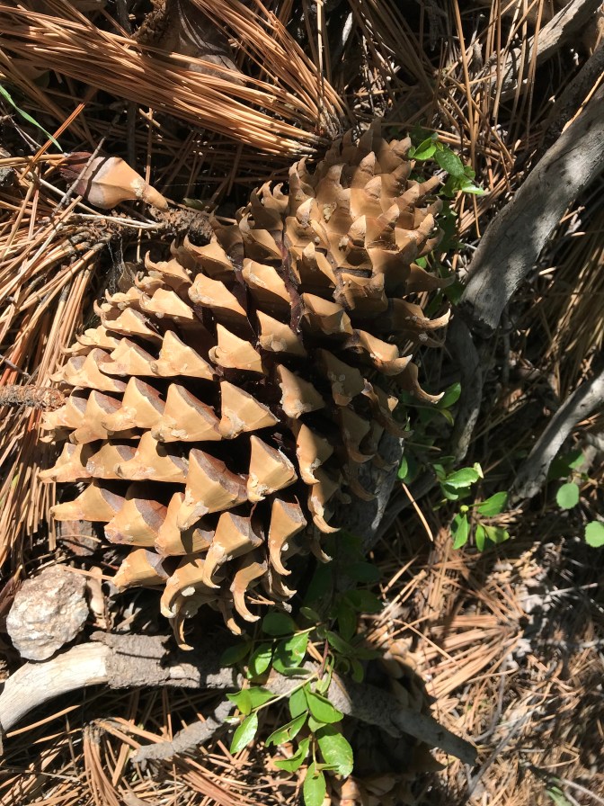 The little lizards skittered out of my path and hummingbirds buzzed me. I finally got pictures of each of these quick little creatures. As well as a gnarly pine cone.