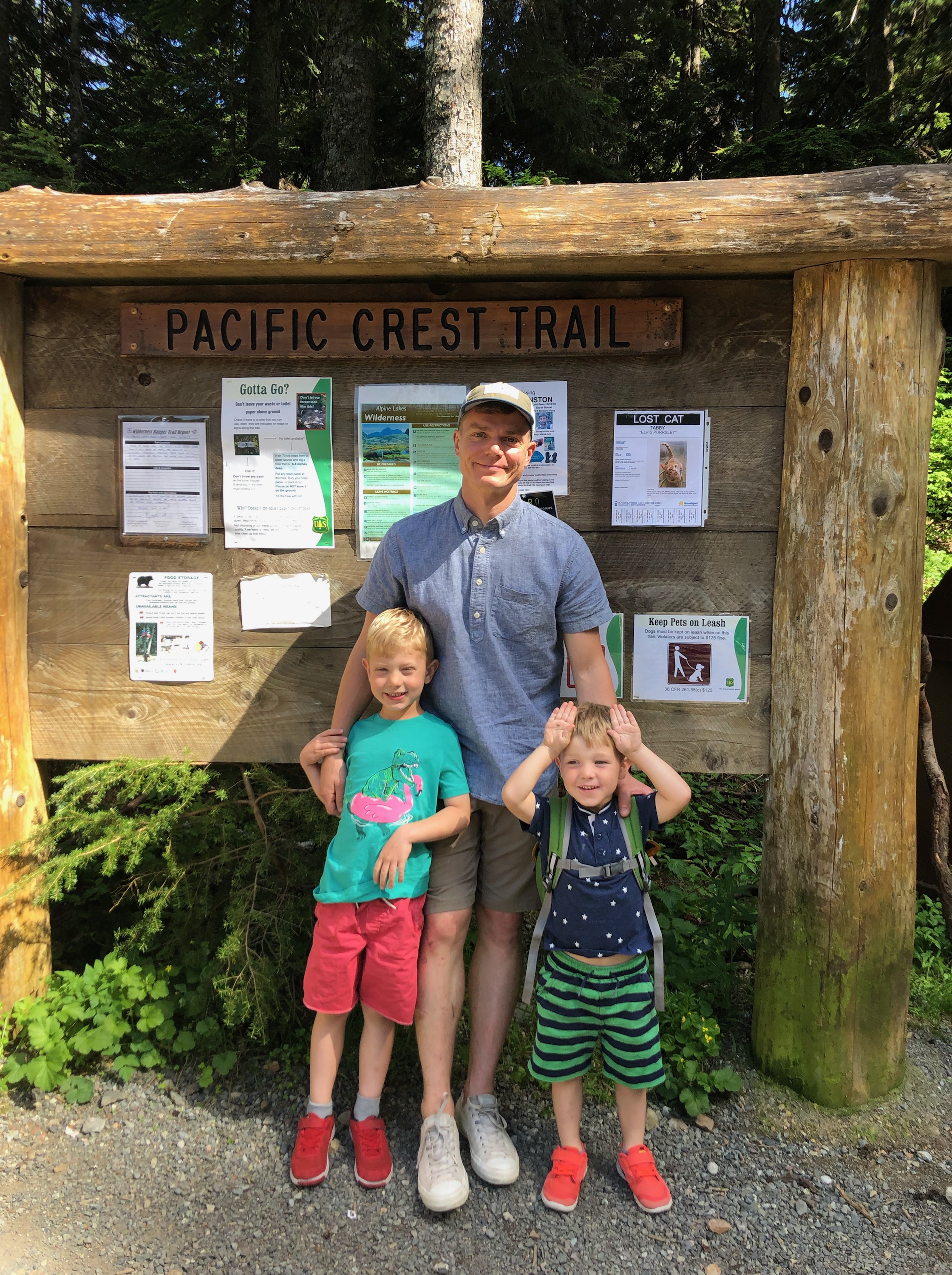 2. Patrick, my younger son, and Hallie took Hatcher and Wyatt to the Pacific Crest trail segment near our homes in North Bend. Hallie took this picture
