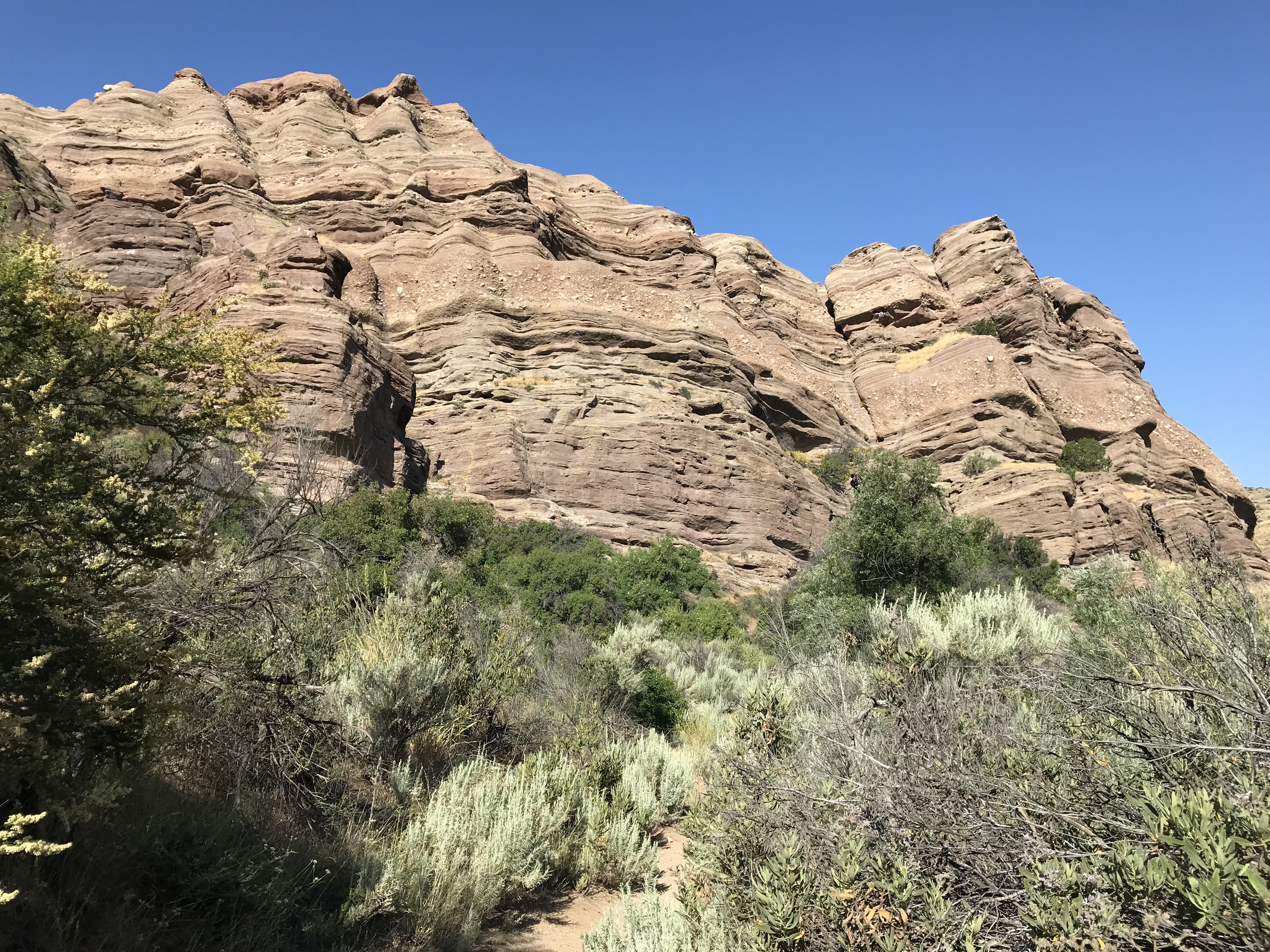 Emerging from the dark, dank underpass the valley continues , now with amazing rock formations. These are the Vasquez Rocks I had heard so much about. I was approaching the town of Agua Dulce (Sweet Water).