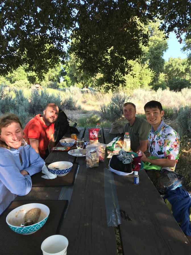 For most of the day I stewed over how best to resolve the issue of Runningbird’s malfunctioning tracker. To spare you from my first draft of a long chain of events, here’s the abbreviated version. Late in the afternoon Runningbird’s Mountaineering friend Steve e-mailed and suggested I just order one from Amazon or REI and have them deliver it to one of our next resupply spots. That could take longer than I had the patience for and Runningbird would be going a long distance without it. He was right, I had to get something going. Then Steve mentioned there was an REI in “Folsom”, California. BINGO! Our Southern California hiking friend “Clax” lived in Folsom and we had been continuously communicating with him since the beginning. (Mind you Folsom is about 215 miles from Mammoth Lakes). I called REI Folsom. Nope, not in stock – BUT – REI in Roseville (230 miles) has three! I called Clax. It really was like a quarterback throwing a really long pass and watching the wide receiver (Clax) run the entire length of the field in slow motion and make a perfect reception. Then Clax ran with the ball!