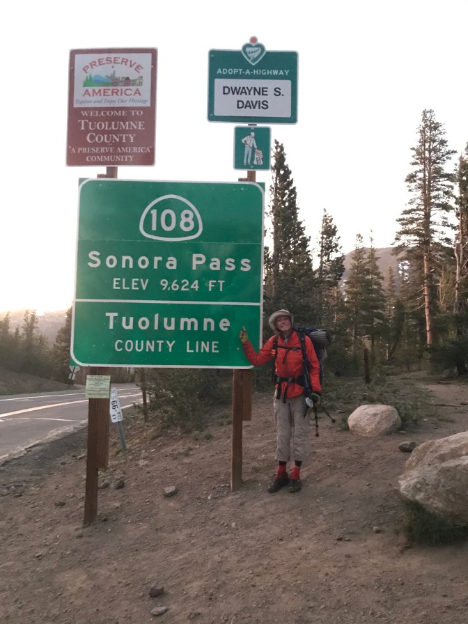 Still smiling after a 25-mile day; Sonora Pass at Highway 108.
