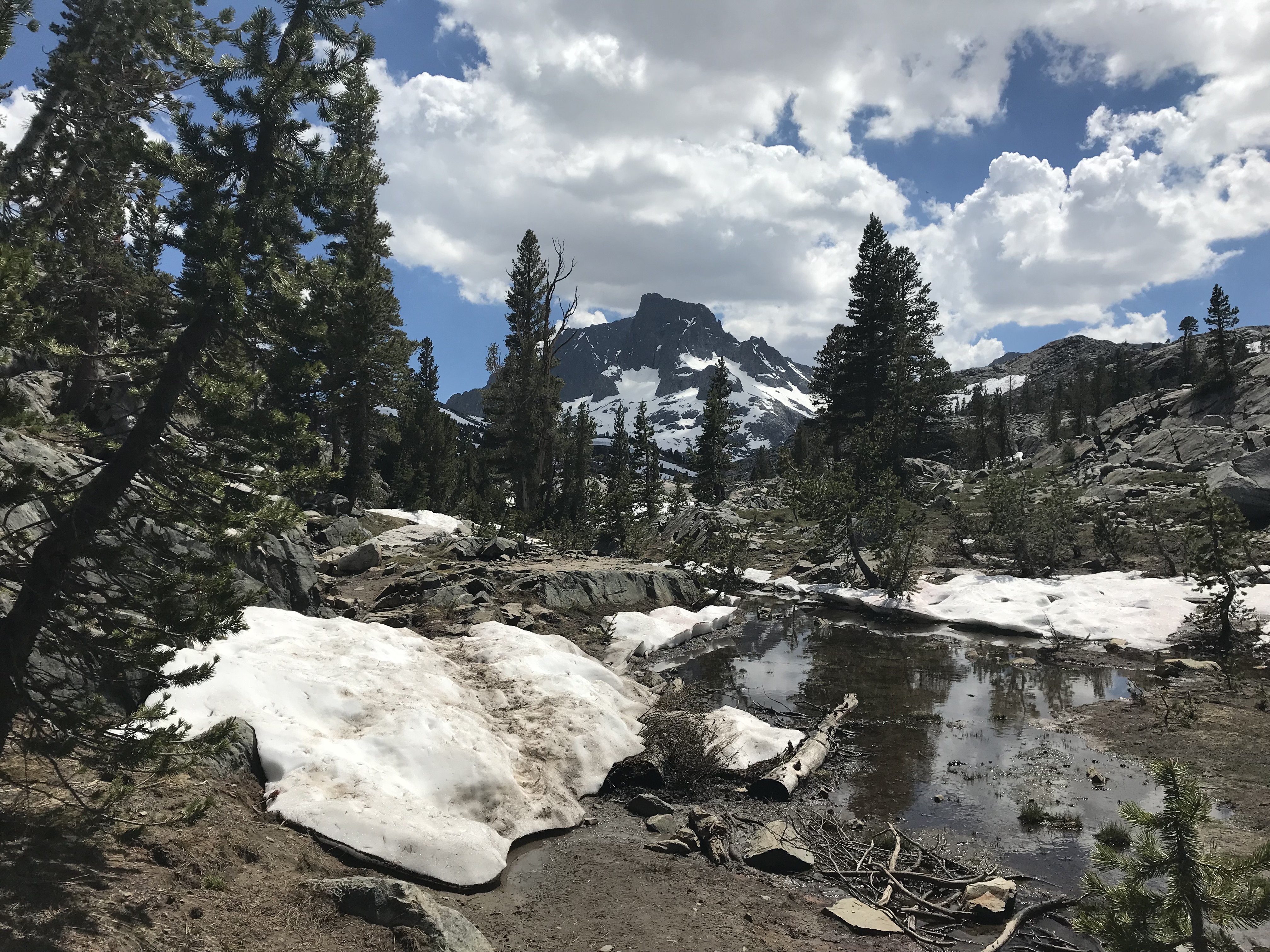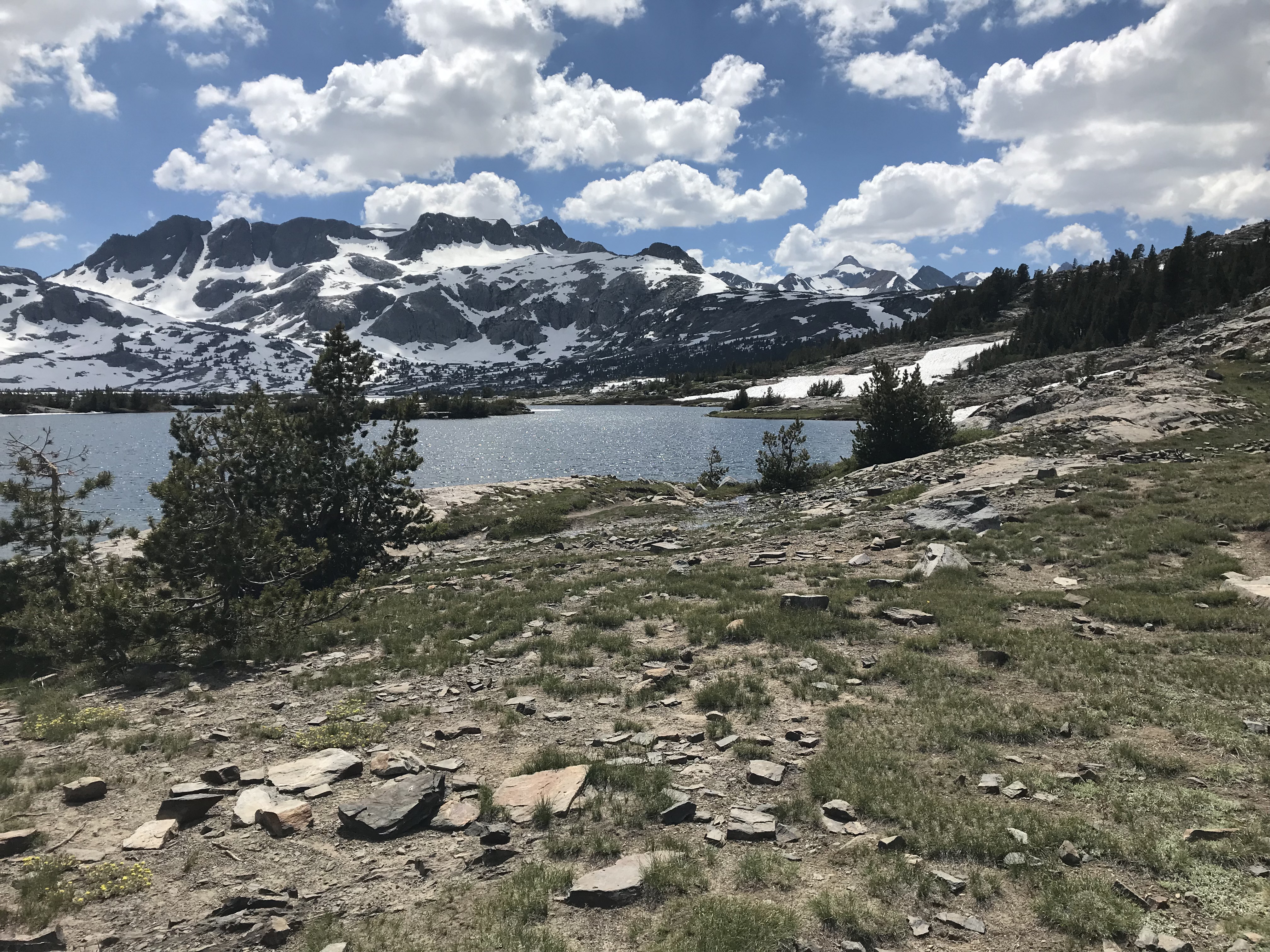 The day went smoothly, except that the snow on the north face of Island Pass was more trouble than I had hoped. There were also many young people going south, who warned of difficulties with navigation in the snow on the Donahue Pass.