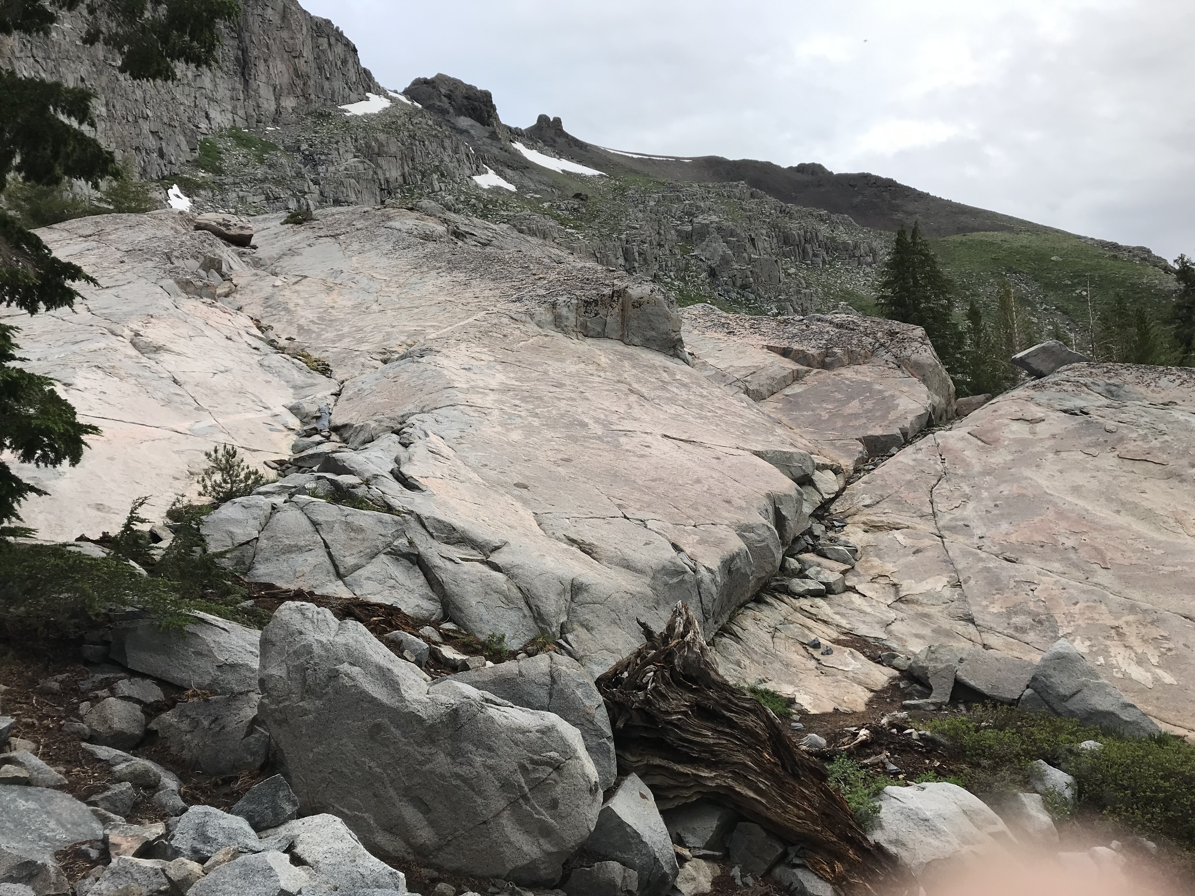 Some SOBO hikers appeared. One young man with a large pack, clean clothes, and shining face proudly told me he was headed for Whitney. He told me he was on a cloud.  I told him amazing beauty awaited him and we passed.  Further on down the day hikers appeared in groves, holding open wild flower books and enormous cameras; wearing clean, white shorts and shoes.  Nearing civilization, I signaled David with my tracker, hoping he would understand my cryptic message.